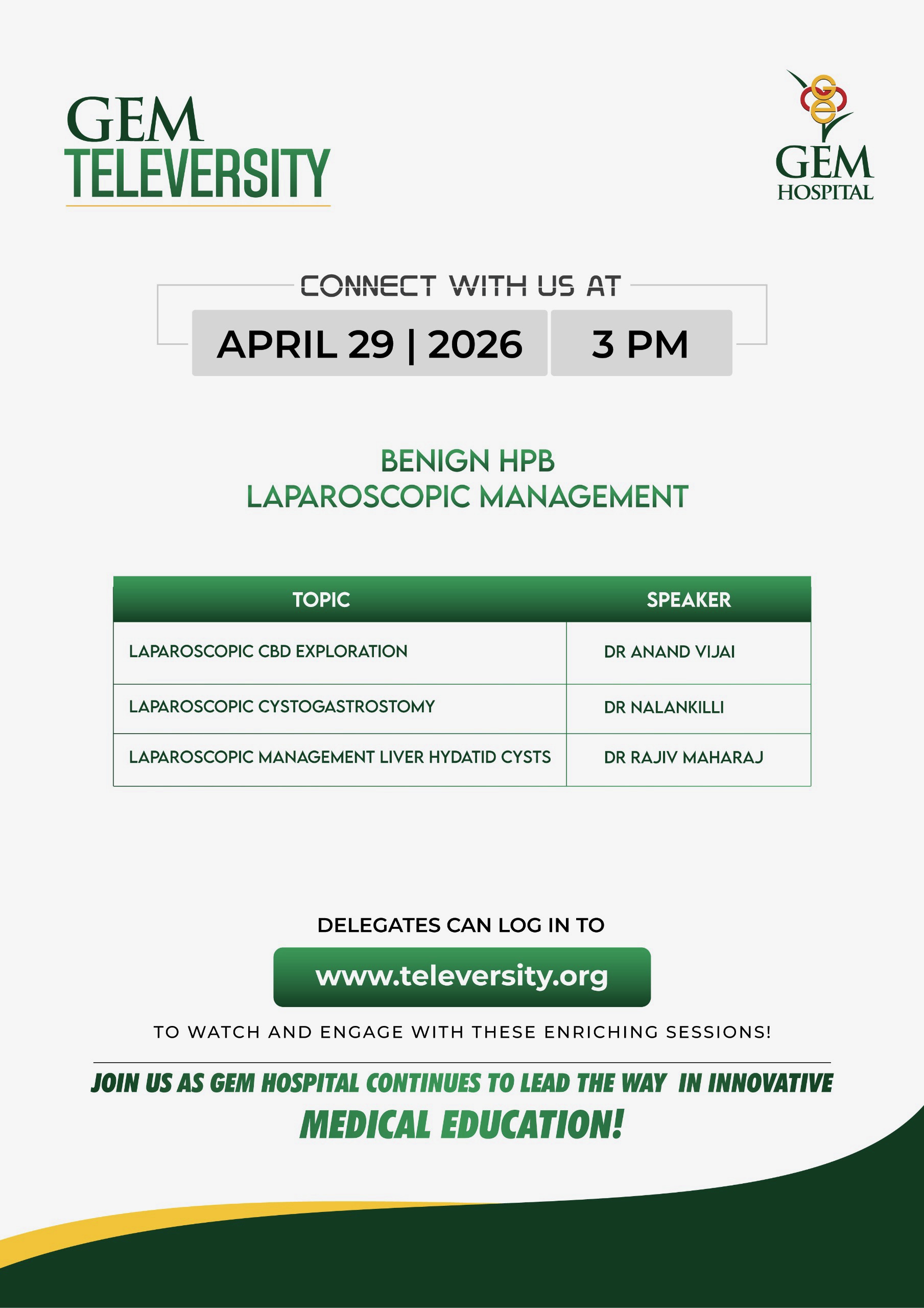 Live surgeries and discussions from GEM Hospital.